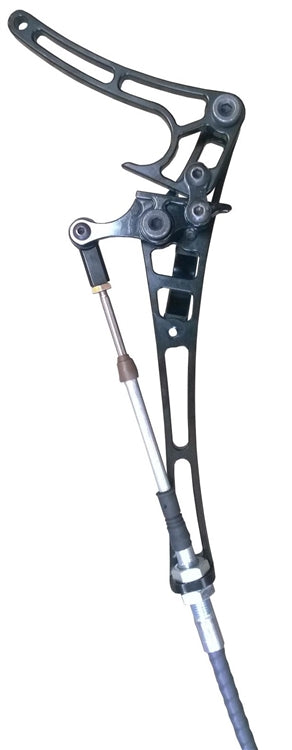 Sprint Car positive cam lock shifter. All Black Assembly with Aluminum Heim and Quick Release End. Cam Lock makes sure the car stays in gear and does not jump out. CNC-machined billet aluminum shifter which clamps to the frame just to the right of the driver. Includes all hardware with heavy duty cable. Cable length set so it does not have to be disconnected for any reason including squaring and blocking your car.