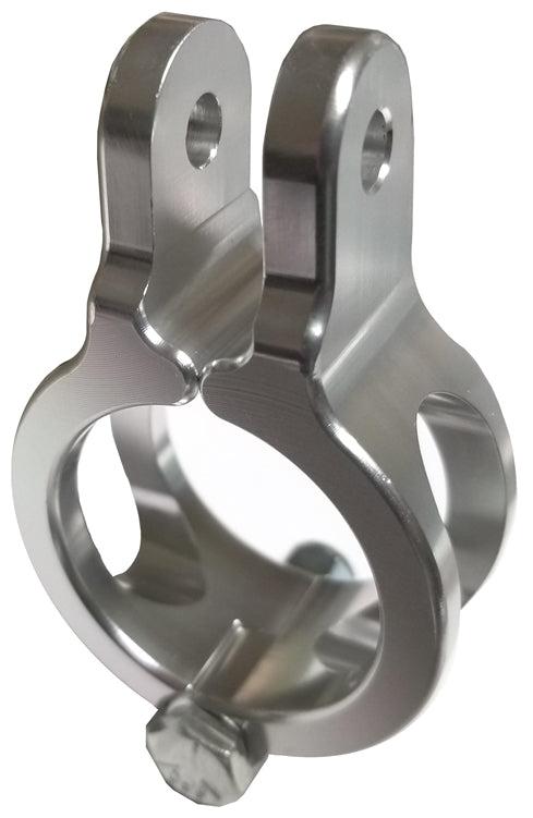 Sprint Car Wing Slider Cylinder Clamp clamps to the top rail in place of a welded tab. Facilitates infinite adjustments, or can be used in the event of a tab being broken off. Precision machined so the through bolt also acts as the pinch bolt.