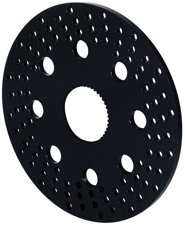 Wilwoods 3.00" x 42 splined axle mount rotors are manufactured from the same high strength billets with the same precision as our 3 hole mount front rotors. Full symmetrical machining provides perfect balance, perfect flatness and the truest rotation of any aluminum rotor being built. Wilwoods engineered drill pattern combines the highest degree of weight reduction with the highest resistance to thermal distortion in the contact faces. You get smooth engagement and a consistent full pedal from the low knock-back characteristics of this design. A durable black anodized finish prevents corrosion and simplifies the visual inspection of the contact faces. The best results are always achieved using PolyMatrix Q compound brake pads with these rotors.